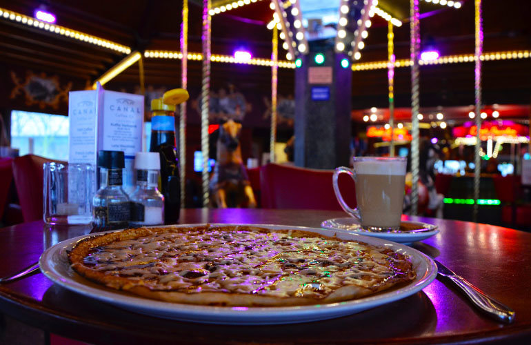 Begin de dag met iets zoets en hartigs. De Carrousel op het Leidseplein is een van de vrolijkste restaurants, dat de hele dag authentieke pannenkoeken serveert. De naam van het restaurant is ontleend aan de vorm en het interieur, een treffende replica van een kermis carrousel.