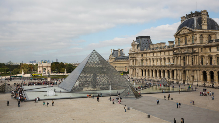 Oud ontmoet nieuw door de bouw van de iconische glazen piramide die in de jaren tachtig werd ontworpen door een Chinees-Amerikaanse architect. De piramide is tevens de toegang van het museum.